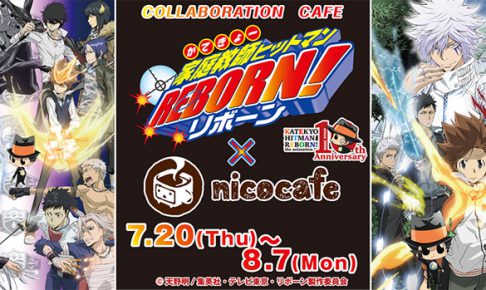 10周年3大イベント開催中のTVアニメ「家庭教師ヒットマンREBORN!」がニコニコ本社「nicocafe」と7/20より2017年7月20日〜2017年8月7日までの開催期間でスペシャルコラボカフェを開催いたします!