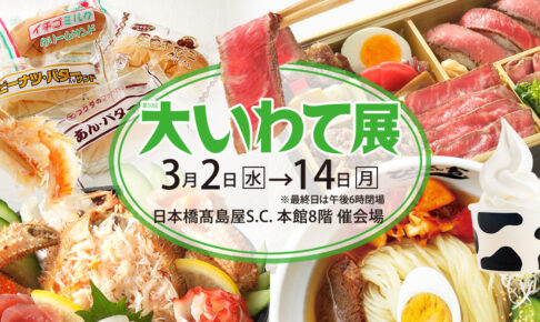 岩手の美味しい商品を取り揃える第50回目の長寿物産展「大いわて展」が、2022年3月2日〜3月14日まで日本橋高島屋で開催される。大いわて展の会場には、大人気バレーボール漫画「ハイキュー!!」で知られる岩手県出身の漫画家・古舘春一先生の直筆描き下ろしイラストが展示されている。