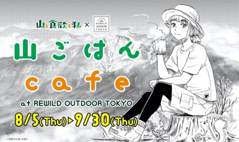 くらげバンチにて連載中「信濃川日出雄」先生による登山漫画「山と食欲と私」× 東京・日本橋の体験型アウトドアカフェ「REWILD OUTDOOR TOKYO」にて、2021年8月5日〜9月30日までの期間限定で「山ごはんカフェ」コラボを開催!山と食欲と私の作中に登場した”山ごはん”を再現したメニューが登場!