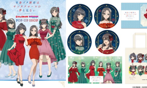 鴨志田一先生のライトノベルを原作とするアニメ「青春ブタ野郎はサンタクロースの夢を見ない」から、「冬服」をテーマとした描き下ろしグッズが2026年3月に一般発売される。「ビックカメラ・アニメガ×ソフマップ」ポップアップストア先行販売グッズより、ドレスアップした麻衣たちの缶バッジやアクリルスタンドフィギュアが登場。