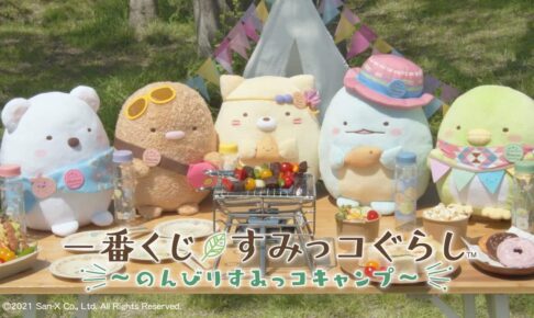 サンエックスのすみっこが大好きな人気キャラクター「すみっコぐらし」よりキャンプをテーマにした新絵柄のグッズが展開される「一番くじ すみっコぐらし~のんびりすみっコキャンプ~」が、2021年5月22日よりファミリーマート全国、すみっコぐらしショップにて発売!すみっコ達が可愛い衣装を着たぬいぐるみなど全賞品解禁!