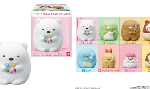 サンエックスの大人気キャラクター「すみっコぐらし」より手のひらサイズのソフビ人形第3弾「すみっコぐらし フレンズ3」が、2021年5月24日より全国量販店のお菓子売場にて発売!第3弾では「だがし屋すみっコ」をテーマに、しろくま・ぺんぎん?・とんかつ・ねこ・とかげ・たぴおかなど可愛いすみっコぐらし達が勢揃い!