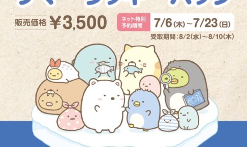 サンエックスが手掛ける大人気キャラクター「すみっコぐらし」× モスバーガーにて、2023年7月6日〜7月23日まで、すみっコたちのオリジナルグッズ4種とモスバーガーの店頭で使えるお食事補助券3,500円分がセットになった、数量限定の「サマーラッキーバッグ」のネット予約が実施される。
