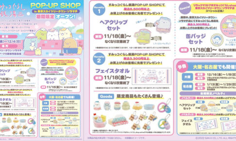 サンエックスが贈る、すみっこにあつまる可愛い仲間たち「すみっコぐらし」のポップアップストアが、東京スカイツリータウン・ソラマチにて2022年11月18日〜12月4日まで開催される。「すみっコぐらし」ポップアップストアでは、描き下ろしイラストを使用した新作グッズが多数ラインナップ!