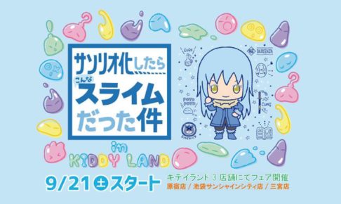 「伏瀬」先生によるWEB小説原作の大人気TVアニメ「転生したらスライムだった件」× サンリオ in キディランド全国3店舗(池袋/原宿/三宮)にて2019年9月21日〜10月11日まで期間限定「サンリオ化したらこんなスライムだった件フェア」コラボ開催!あのリムル達が可愛らしいサンリオ風な限定グッズになって登場!