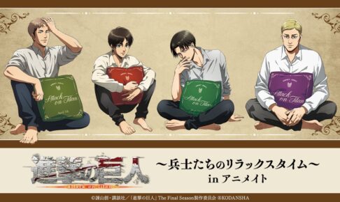 諫山創先生による人気漫画を原作としたTVアニメ「進撃の巨人」より描き下ろしイラストを使用したポップアップストア「進撃の巨人~兵士たちのリラックスタイム~ in アニメイト」が、全国19都市にて2021年8月21日〜9月5日まで開催!描き下ろしには調査兵団よりエレン・リヴァイ・エルヴィン・ジャンがラインナップ。