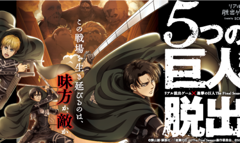 別冊少年マガジンにてクライマックス連載中「諫山創」先生による人気漫画を原作としたTVアニメ「進撃の巨人」ファイナルシーズン × リアル脱出ゲームとの体験型イベント「5つの巨人からの脱出」が、全国7都市(東京/名古屋/仙台/岡山/福岡/大阪/札幌)にて2021年2月25日〜8月1日まで各会場期間限定で開催!