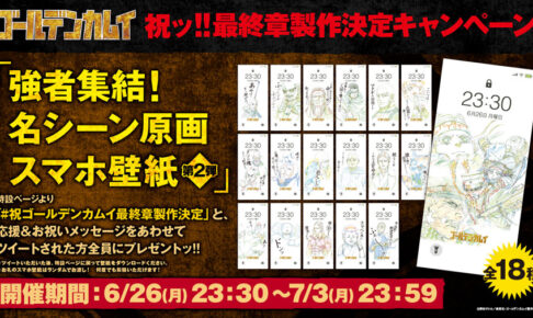 週刊ヤングジャンプにて連載された「野田サトル」先生の大人気漫画を原作としたTVアニメ「ゴールデンカムイ」最終章の制作が決定。第七師団を率いる鶴見篤四郎中尉を描いた最終章製作決定ビジュアルが解禁となり、参加者全員にスマホ用壁紙がランダムでプレゼントされるツイッターキャンペーンも7月3日まで開催される。