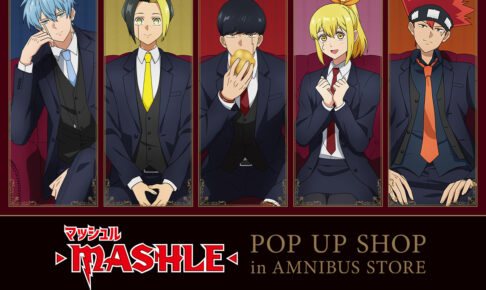 甲本一先生原作のアニメ「マッシュル -MASHLE-」× AMNIBUSのポップアップストアが、MAGNET by SHIBUYA109 5Fにて、2023年6月23日〜7月9日まで開催される。マッシュ、フィン、ランス、ドット、レモンら5名が、スーツに身を包み椅子に腰掛けた描き下ろしイラストのグッズが登場!