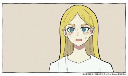 諫山創先生による大人気漫画を原作としたテレビアニメ「進撃の巨人」The Final Season Part2より、作画監督描き下ろしの「イェレナ」と、アルミンを睨みつける鬼の形相の「イェレナ」作監修正が解禁された。これは2022年1月16日に放送された第77話「騙し討ち」の放送終了後に公開されたもの。