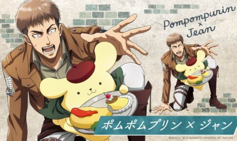 諫山創先生による大人気漫画を原作としたテレビアニメ「進撃の巨人」× サンリオキャラクターズとのコラボレーションより「ジャン × ポムポムプリン」の描き下ろし等身イラストが解禁された。描き下ろし等身イラストでは、ポムポムプリンにプリンとオムライスを取られ困惑するジャン・キルシュタインが描かれた。