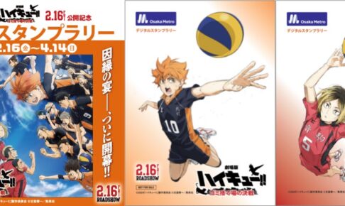 古舘春一先生原作のアニメ「劇場版ハイキュー‼ ゴミ捨て場の決戦」映画公開記念 × Osaka Metro (大阪メトロ)にて、2024年2月16日〜4月14日までデジタルスタンプラリーが開催される。なんば駅・心斎橋駅など計7駅に設置されるスタンプを集めた方の中から先着5,000名の方にステッカーなどプレゼント!