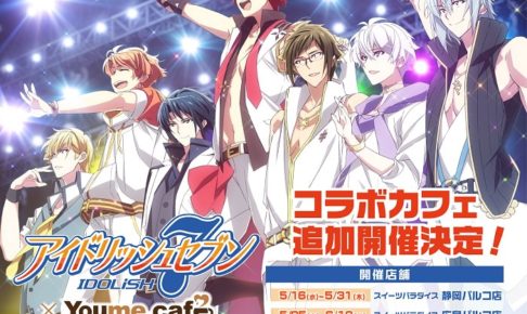 TVアニメ「アイドリッシュセブン」× アニメイトカフェの海外展開「Youme cafe」in スイーツパラダイスのコラボカフェが大好評につき2018年5月16日よりスイーツパラダイス全国4店舗(静岡・広島・川崎・福岡)にて順次追加開催決定!!
