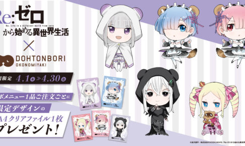 「長月達平」先生による大人気ライトノベルを原作とする人気TVアニメ「Re:ゼロから始める異世界生活 (リゼロ)」× お好み焼き「道とん堀」によるコラボが2021年4月1日〜4月30日までの期間限定で開催! 「リゼロ」に登場するキャラクター達をイメージしたオリジナルコラボメニューや限定ノベルティーが登場!