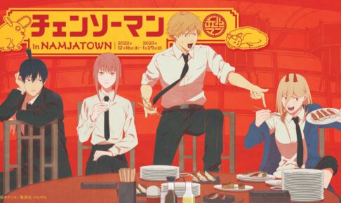 藤本タツキ先生による人気漫画を原作としたアニメ「チェンソーマン」× ナンジャタウンにて、2022年12月16日〜2023年1月29日までコラボイベントが開催される。「チェンソーマン × ナンジャタウン」の詳細発表に先駆けて、餃子や中華料理を味わうデンジ・早川アキ・マキマ・パワーらの描き下ろしイラストが登場!