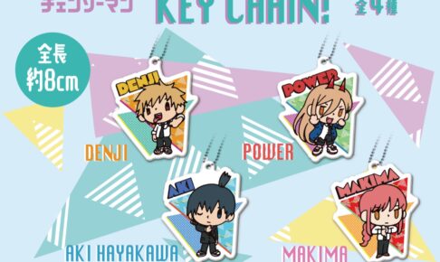 藤本タツキ先生による人気漫画を原作としたアニメ「チェンソーマン」より、描き起こしデフォルメを使用したデンジ・早川アキ・マキマ・パワーらの缶バッジ・アクリルキーホルダー・マグカップなどのプライズグッズが、2022年11月から全国のゲームセンターにて展開される。さらに12月からはポチタ・姫野・コベニらも追加登場!