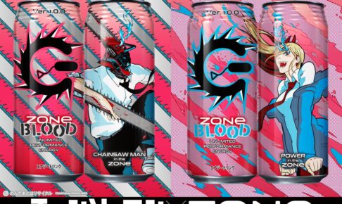 藤本タツキ先生による人気漫画を原作としたアニメ「チェンソーマン」× エナジードリンク「ZONe (ゾーン)」とのコラボ缶が、2022年10月4日より全国のコンビニエンスストアなどにて発売される。MAPPAが監修を手掛けた「チェンソーマン」と「パワー」のイラストを使用した全2種の「ZONe BLOOD」が登場!