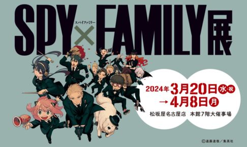 遠藤達哉先生による大人気作品「SPY×FAMILY (スパイファミリー)」の初となる展覧会『SPY×FAMILY展』が、2024年3月20日〜4月8日までの期間、松坂屋名古屋店 本館7階大催事場にて開催!名シーンのイラスト展示・立体造作・映像展示や、『SPY×FAMILY展』ならではのグッズが多数登場!