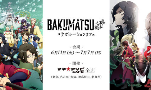 「恋愛幕末カレシ〜時の彼方で花咲く恋〜(ばくかれ)」原作のTVアニメ「BAKUMATSU」× マチアソビカフェ全国5店舗(東京・大阪・名古屋・北九州・徳島)にて2019年6月11日よりコラボカフェ開催!作中に登場する料理を再現したフードメニューの注文で原画ランチョンマットなどプレゼント!さらに限定グッズも登場!