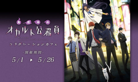 KADOKAWAのWEBコミック「コミックNewType」にて連載中「たもつ葉子先生」による原作漫画のTVアニメ「真夜中のオカルト公務員」× マチアソビカフェ全国5店舗(東京・大阪・名古屋・眉山・北九州)にて2019年5月24日までの期間限定でコラボカフェ開催中!本格コラボメニュー、限定ノベルティーが登場!