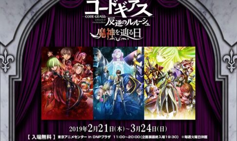 劇場版「コードギアス 復活のルルーシュ」公開記念!コードギアス 反逆のルルーシュ企画展 -魔神を辿る日‐が東京アニメセンター in DNPプラザにて2019年2月21日〜3月24日までの期間限定で開催!劇場版3部作を振り返る展示、企画展オリジナルグッズ、枢木神社メッセージエリア、1Fカフェでは限定メニューも!