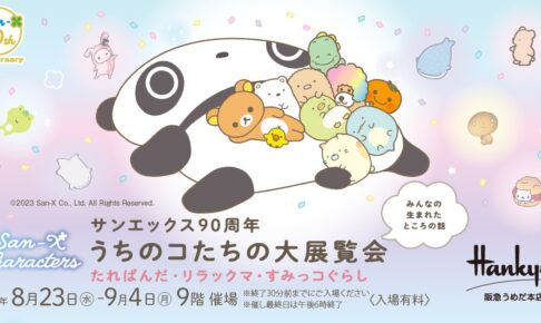 「すみっコぐらし」や「リラックマ」、「たれぱんだ」などの大人気キャラクターを生み出した「サンエックス」の創業90周年を記念する大展覧会「サンエックス90周年 うちのコたちの大展覧会」の大阪開催が、2023年8月23日〜9月4日まで阪急うめだ本店にて実施される。先行販売グッズ、店舗限定グッズなども登場!