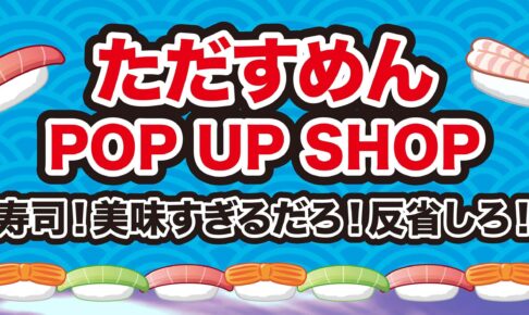 独創的なゲームを手掛ける「ただすめん」氏のポップアップストア『ただすめん POP UP SHOP~寿司!美味すぎるだろ!反省しろ~』が、有楽町マルイにて2024年5月17日〜6月2日まで開催。人気ゲーム「そろそろ寿司を食べないと死ぬぜ!」のグッズが登場するほか、限定景品が当たる抽選会も実施される。