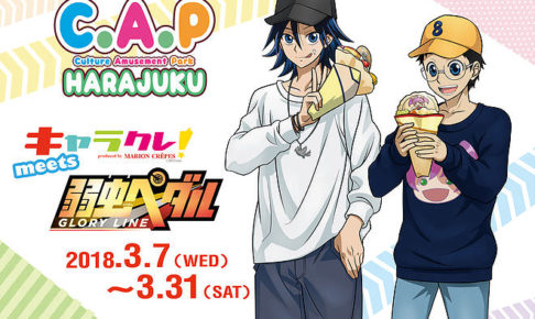 TVアニメ「弱虫ペダル GLORY LINE」x キャラクレ原宿にて3/7からコラボ開催!!原宿らしいおしゃれなファッショをしたキャラクター達が登場!!「総北高校」「箱根学園」「京都伏見高校」をイメージしたコラボクレープ・ドリンクが登場!!コラボレーション開催期間は2018/3/7~2018/3/31まで!