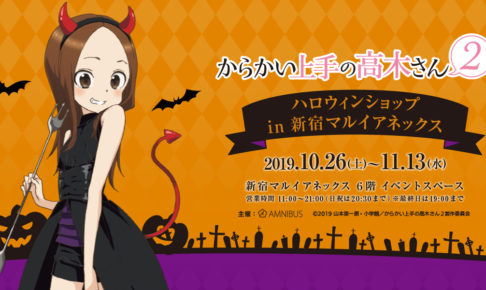 山本崇一朗先生による漫画原作のTVアニメ「からかい上手の高木さん2」× 主催「AMNIBUS」による『からかい上手の高木さん ハロウィンショップ』in 新宿マルイアネックスが2019年10月26日〜11月13日の期間限定でハロウィン仮装に身を包んだ「高木さん」のグッズショップ開催!さらにお買い上げ抽選会も!
