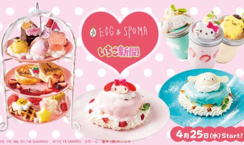 サンリオ「いちご新聞」創刊600号記念!!東京・新宿ルミネエスト8階「EGG&SPUMA」にて4/25からサンリオのコラボカフェ開催!いちご新聞編集部が今回描き下ろしたデザインが店内を彩る!!大人気キャラクター達のカフェメニューが登場!コラボレーション開催期間は2018年4月25日 (水)~7月22日(日)まで!