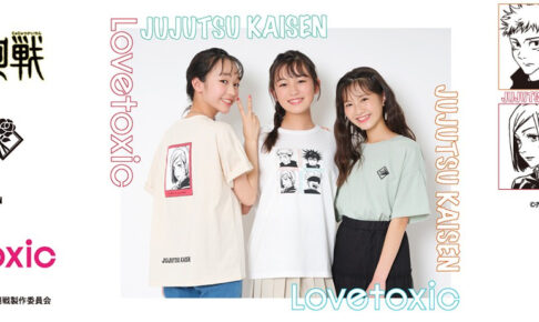 芥見下々先生による人気漫画を原作としたTVアニメ「呪術廻戦」(じゅじゅつかいせん) × Lovetoxic(ラブトキシック)によるコラボTシャツが2021年6月9日より全国ラブトキシック店舗、公式オンラインショップ「ナルミヤオンライン」などにて発売!お馴染みの呪術高専メンバーがプリントされたデザインで登場!