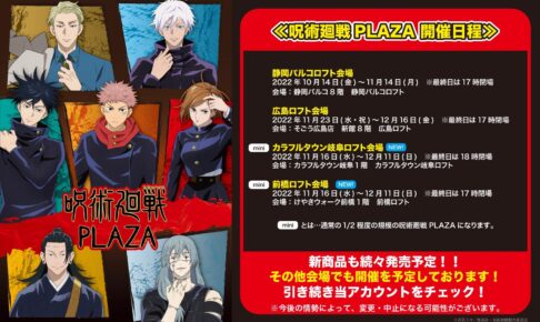 芥見下々先生による人気漫画を原作としたアニメ「呪術廻戦」× プラザのminiポップアップストアが、岐阜/群馬にて2022年11月16日〜12月11日まで開催される。「呪術廻戦 PLAZA mini」と題したポップアップストアでは、イベント限定の描き下ろしイラストを使用したグッズや、スタンディパネルなどが登場!