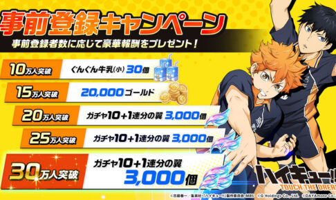 古舘春一先生による大人気漫画を原作としたアニメ「ハイキュー!!」の新作スマホゲーム『ハイキュー‼ TOUCH THE DREAM (ハイドリ)』が、2022年11月8日より事前登録受付を開始!烏野・音駒・青葉城西・梟谷学園などのキャラクター達が、ちびキャラ3DモデルでバレーボールをするPV第1弾が解禁された。