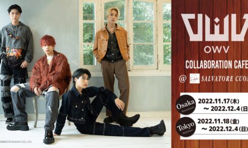 オーディション番組「PRODUCE 101 JAPAN」に出演した元練習生4名により結成されたボーイズグループ「OWV (オウブ)」× SALVATORE CUOMO(東京/大阪)にて2022年11月17日〜12月4日までコラボカフェが開催される。「OWV」コラボカフェでは、メンバー考案のコラボメニューが登場!