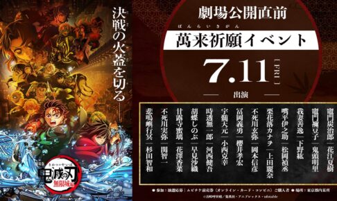 吾峠呼世晴先生による大人気漫画を原作としたアニメ「鬼滅の刃」の最終決戦を描く最新劇場版「鬼滅の刃 無限城編 第一章」の公開を間近に控える2025年7月11日、出演声優陣13人が集結する『劇場版「鬼滅の刃」無限城編 公開直前 萬来祈願イベント』が東京都内にて開催される。