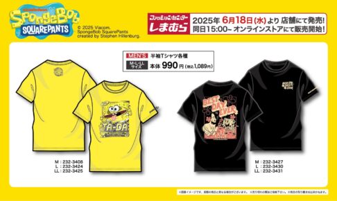 アメリカ生まれの大人気キャラクター「スポンジ・ボブ」× ファッションセンター「しまむら」全国にて、2025年6月18日よりコラボグッズが発売される。「スポンジボブ × しまむら」では、スポンジ・ボブとその大親友パトリックをデザインした、しまむらならではのコラボアパレル「半袖Tシャツ」がラインナップ!